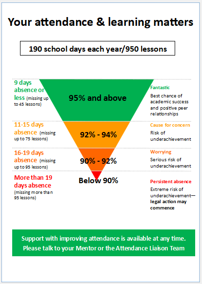 There tends to be good reasons why children become reluctant to attend school. Take the time to listen to your child, share any concerns you or your child may have with the child’s tutor or our Attendance Liaison Team and seek support at the very earliest opportunity.